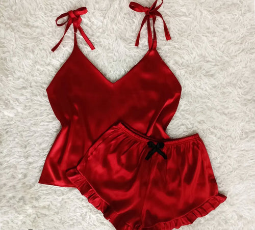 Red silk cami shorts trouser